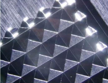 | STAVAX模具鋼大小V鋸齒切削 | STAVAX模具鋼四棱錐切削 | POLMAX模具鋼VCUT切削 | 三棱錐超精密切削 |